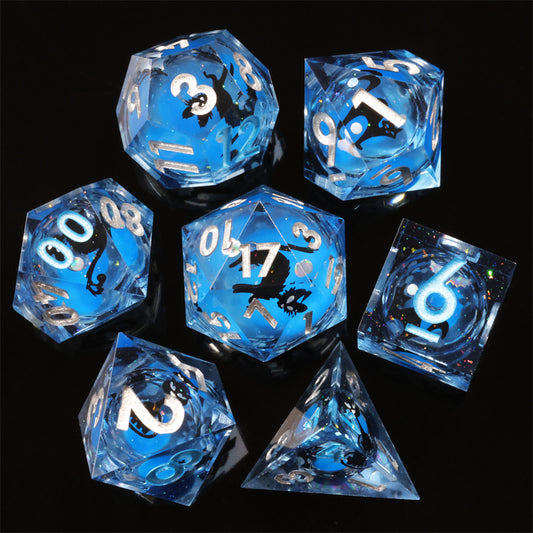 Blue Dragon Eye1 Handmade Sharp Edge 7 Piece Piece Resin d&d Dungeons and Dragons Dice Set