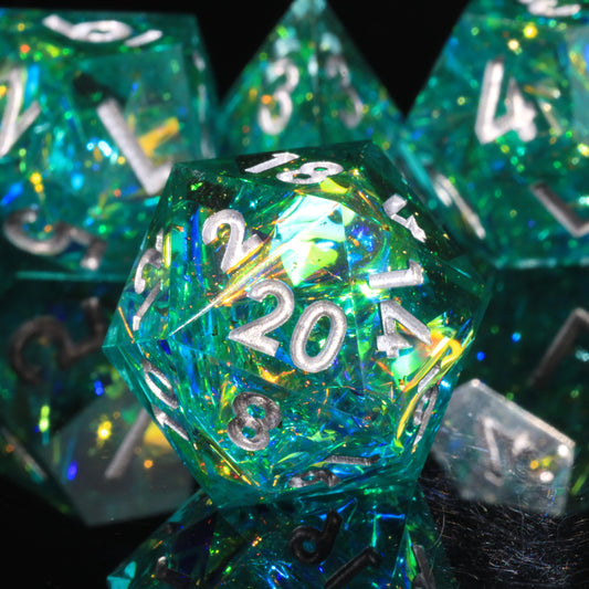 Deep Sea Magic-Handmade Sharp Edge 7 Piece d&d Dungeons and Dragons Dice Set