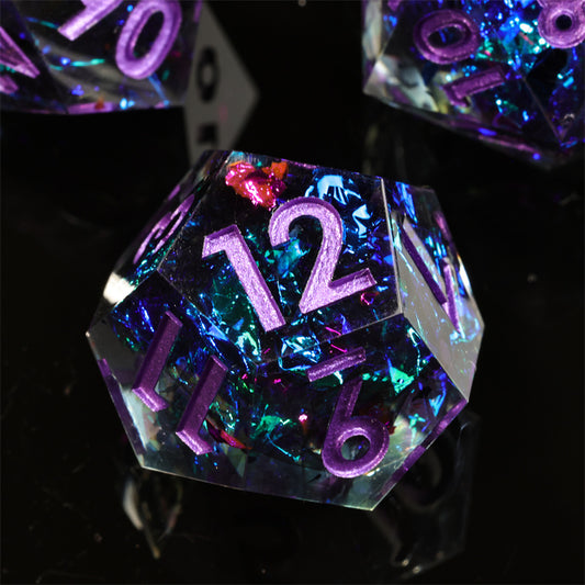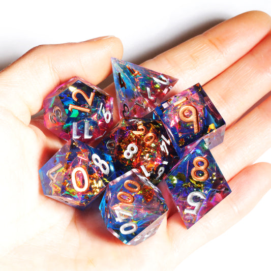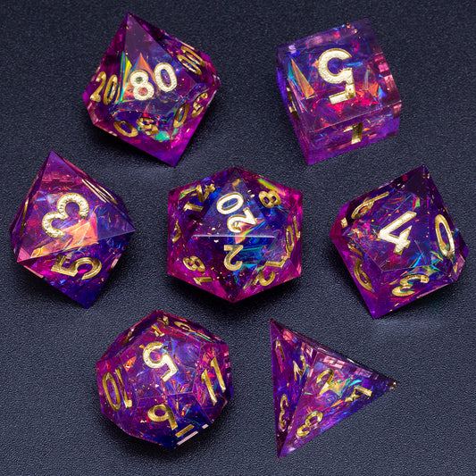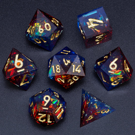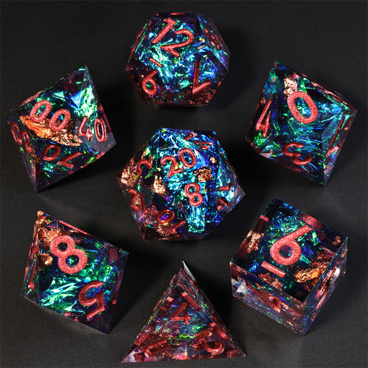 Aurora Handmade Sharp Edge 7 Piece Resin d&d Dungeons and Dragons Dice Set