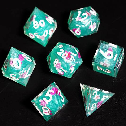 Cherry Blossom Handmade Sharp Edge 7 Piece Resin d&d Dungeons and Dragons Dice Set