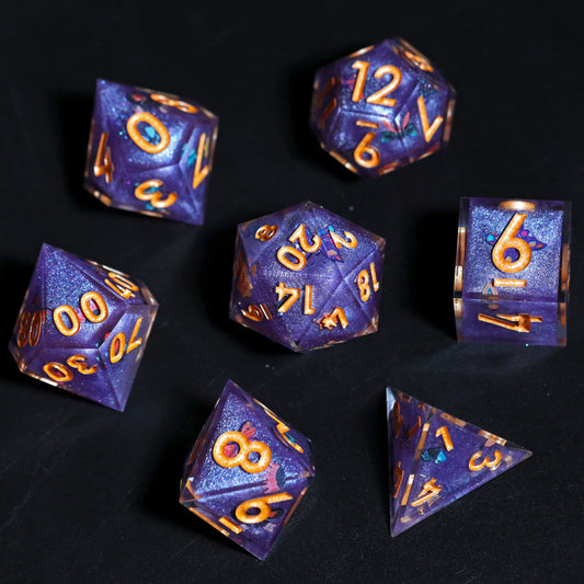 Butterfly Event Handmade Sharp Edge 7 Piece Resin d&d Dungeons and Dragons Dice Set