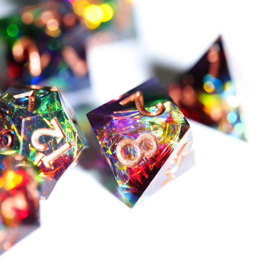 Blessed Beacon Handmade Sharp Edge 7 Piece Resin d&d Dungeons and Dragons Dice Set