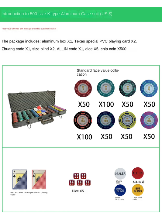 Mini Planet Wholesale Custom 500pc 14g Clay Poker Chips Set Texas Hold'em Game Kit with Aluminum Suitcase Custom for Casino