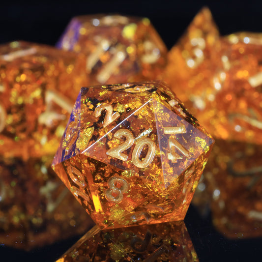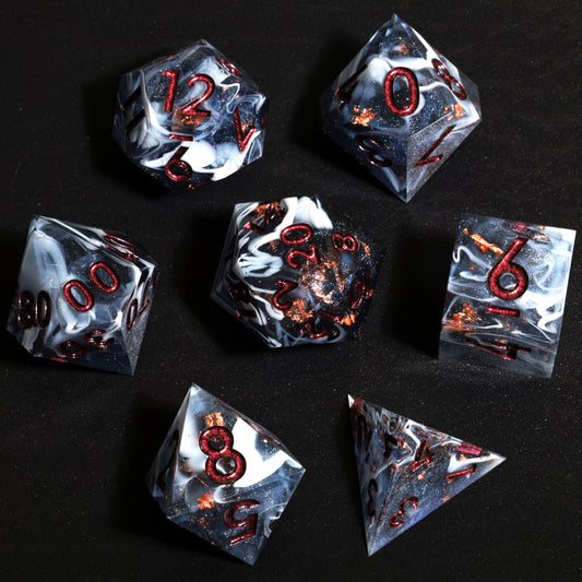 Scorching Soul Handmade Sharp Edge 7 Piece Reesin d&d Dungeons and Dragons Dice Set