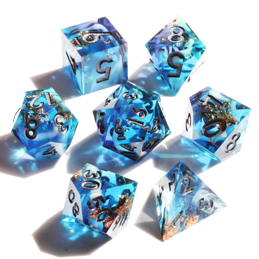 Icewind Ravine Handmade Sharp Edge 7 Piece Resin d&d Dungeons and Dragons Dice Set