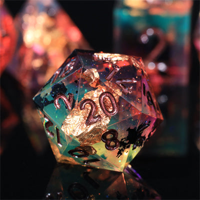 Chaos Glow Handmade Sharp Edge 7 Piece Resin d&d Dungeons and Dragons Dice Set
