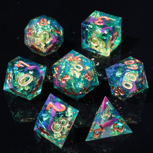 Forgotten Oasis Handmade Sharp Edge 7 Piece Resin d&d Dungeons and Dragons Dice Set
