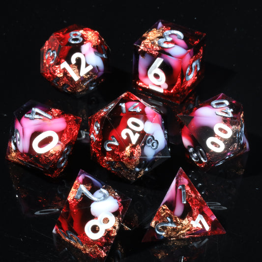 Bloody Rose Handmade Sharp Edge 7 Piece Resin d&d Dungeons and Dragons Dice Set