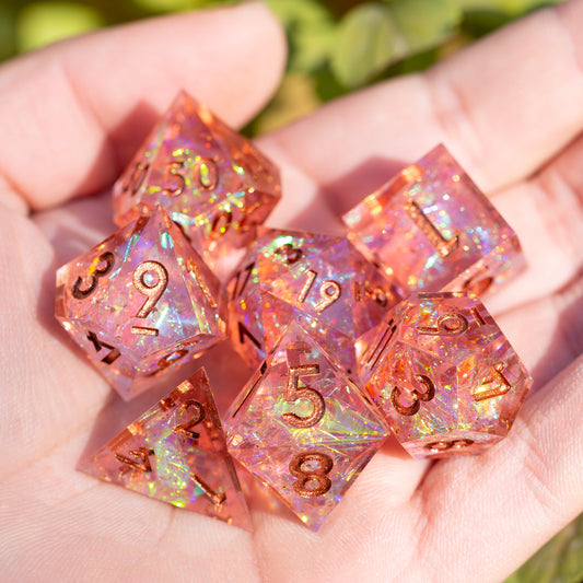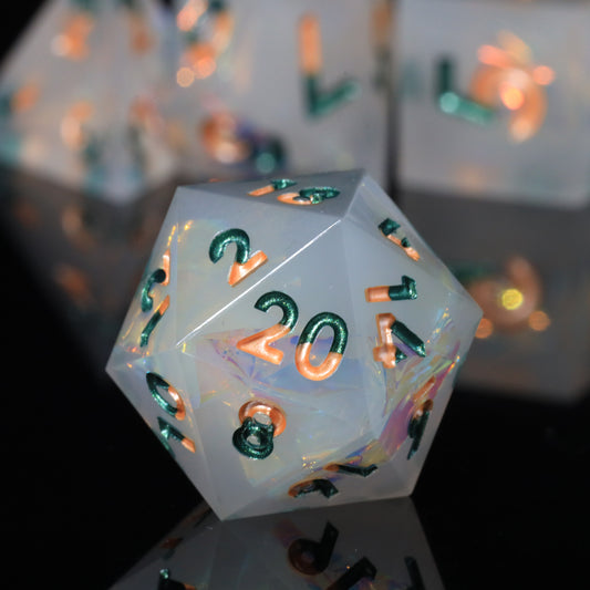 Opal Secret Handmade Sharp Edge 7 Piece Resin d&d Dungeons and Dragons Dice Set