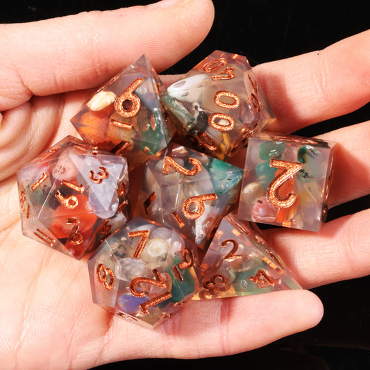 Fire Soul Handmade Sharp Edge 7 Piece Resin d&d Dungeons and Dragons Dice Set