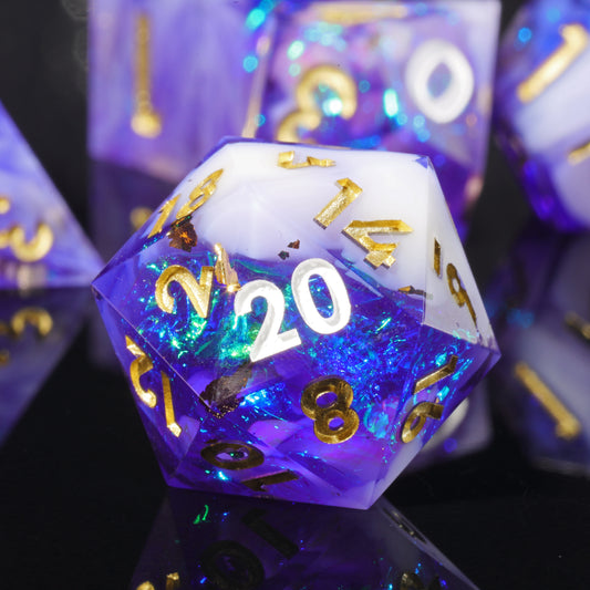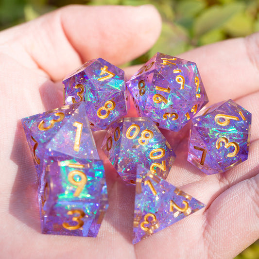 Galaxy Purple Handmade Sharp Edge 7 Piece Resin d&d Dungeons and Dragons Dice Set