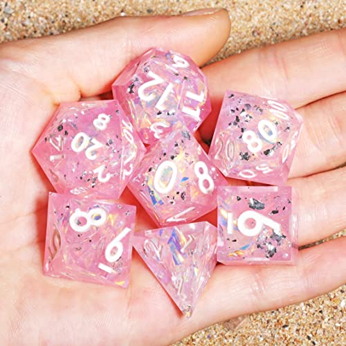 Galaxy Pink Handmade Sharp Edge 7 Piece Resin d&d Dungeons and Dragons Dice Set