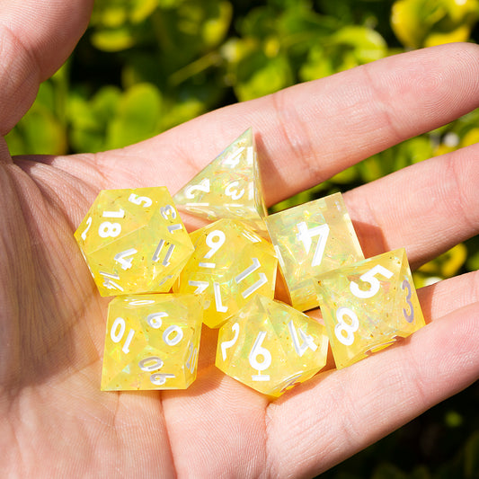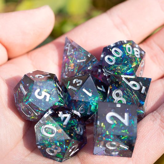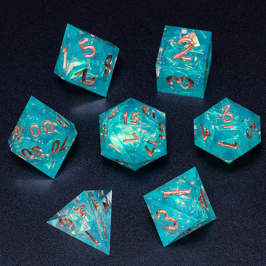 Sunshine Coast Handmade Sharp Edge 7 Piece Reesin d&d Dungeons and Dragons Dice Set
