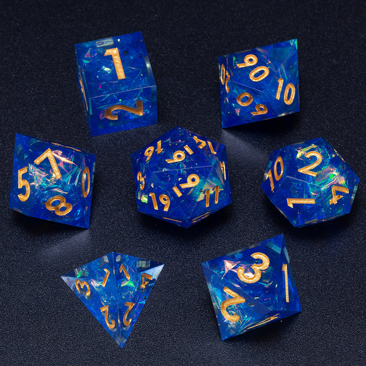 Galaxy Blue- Handmade Sharp Edge 7 Piece Resin d&d Dungeons and Dragons Dice Set