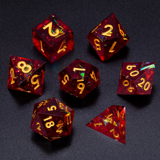 Scorching Soul Handmade Sharp Edge 7 Piece Reesin d&d Dungeons and Dragons Dice Set