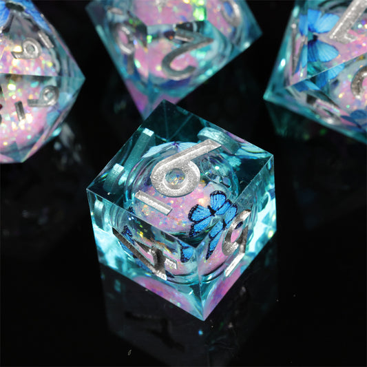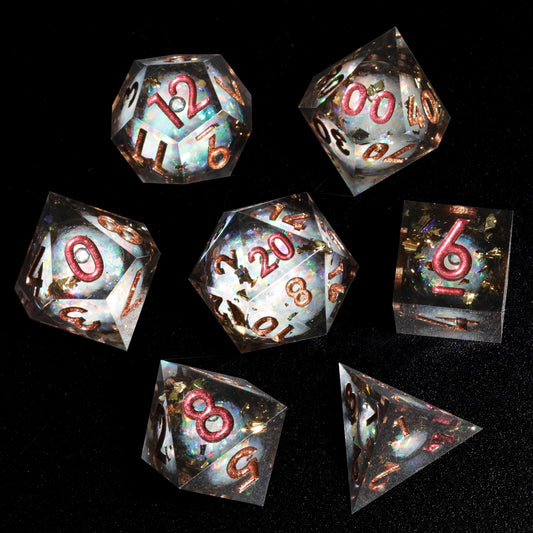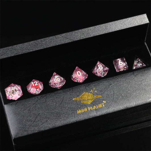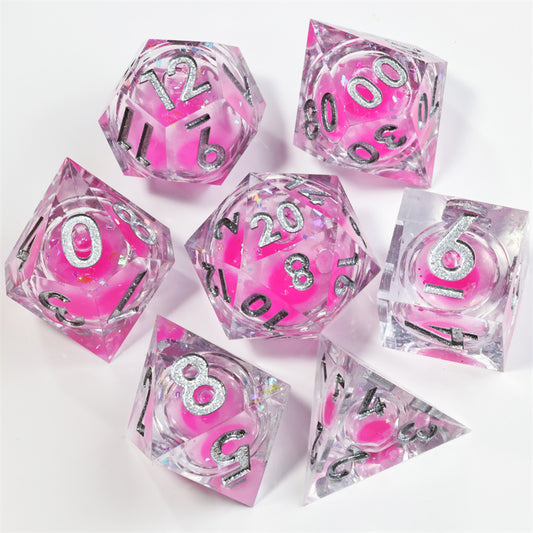 Liquid Core+Sticker Handmade Sharp Edge 7 Piece Dice Set