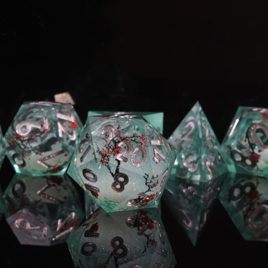 Emerald Garden Handmade Sharp Edge 7 Piece Resin d&d Dungeons and Dragons Dice Set
