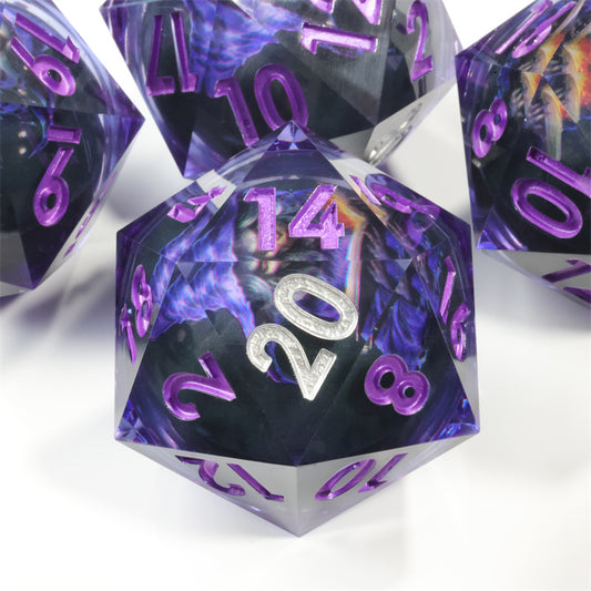 Liquid Core Amerhyst Handmade Sharp Edge 7 Piece Resin d&d Dungeons and Dragons Dice Set