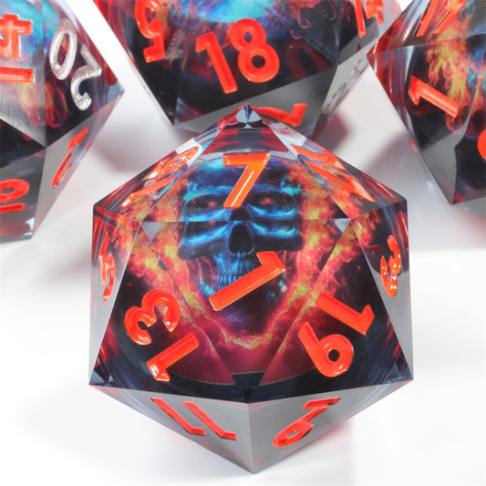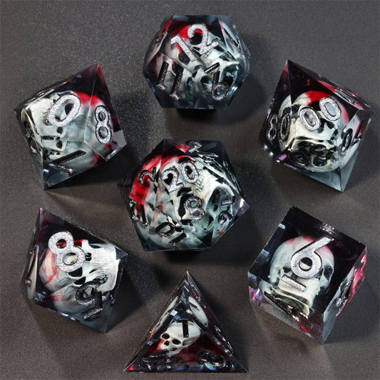 3D Skull Dice Handmade Sharp Edge 7 Piece Dice Resin d&d Dungeons and Dragons Set