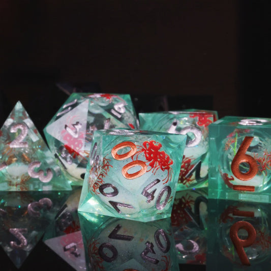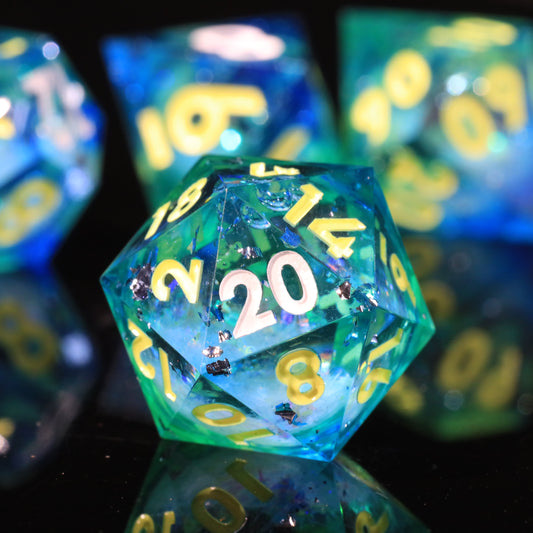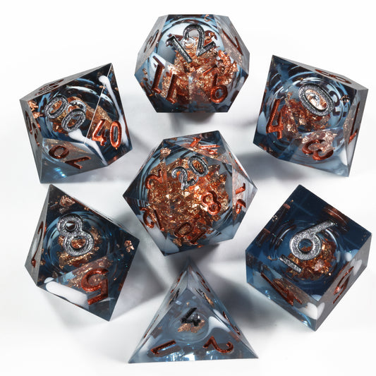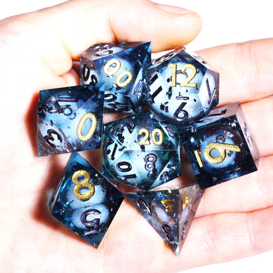 Liquid Core Ninjas Handmade Sharp Edge 7 Piece Resin d&d Dungeons and Dragons Dice Set