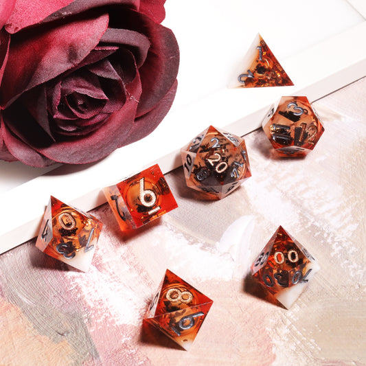 Faerie Fire Handmade Sharp Edge 7 Piece d&d Resin Dungeons and Dragons Dice Set